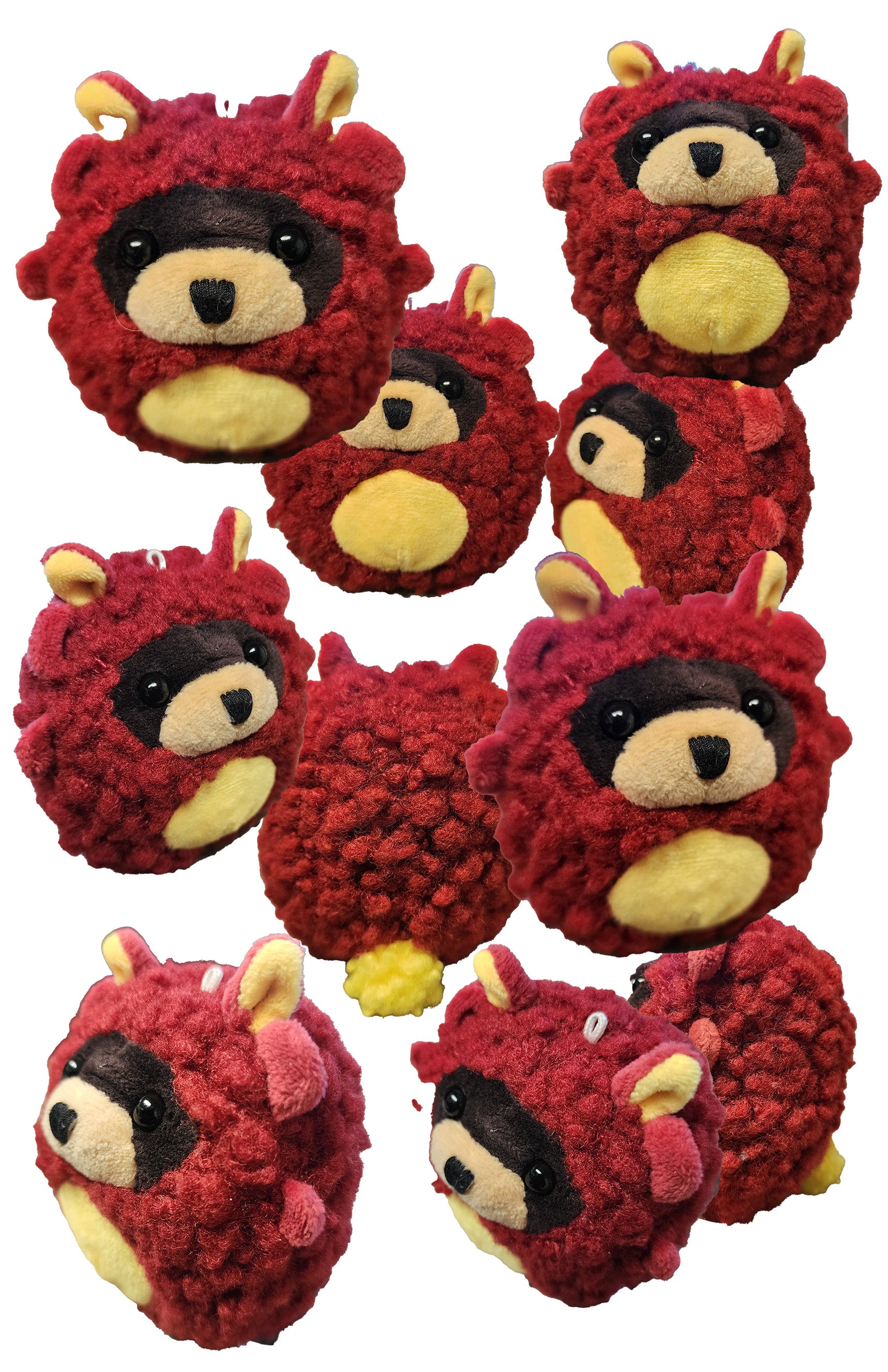 Spicee Pickles is dressed in a red and orange bunny suit, made with red sherpa/fluffy fleece for the main part of the body, yellow sherpa/fluffy fleece for the belly, and yellow sherpa/fluffy fleece for the tail. The arms, legs, and outer ear are made with red microfiber/fleece, while the inner ear is made with yellow microfiber/fleece. With a overall size of 5 inches, including .25 inches for ear length and .25 inches for arms and legs length, the Spicee Pickles Plushie Doll is the perfect companion for those who value preparedness and organization. Attach the keychain to take Pickles with you on all your adventures!